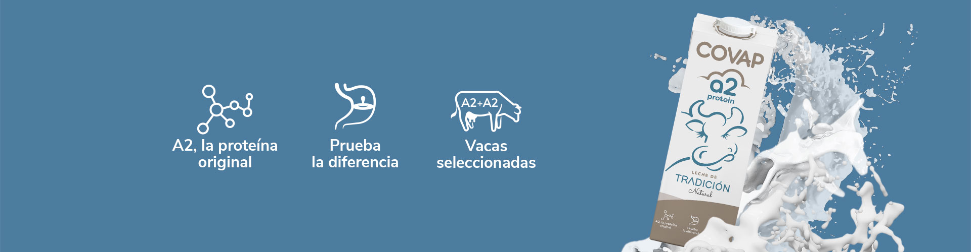 La Leche COVAP A2 Protein mantiene toda la calidad, el sabor, las propiedades nutricionales de tu leche de siempre y además es más digestiva.